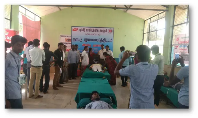 The NSS unit organises blood donation camps with hospitals and blood banks. Students and staff voluntarily donate blood, creating awareness and serving the community. Such initiatives instil social responsibility and compassion.